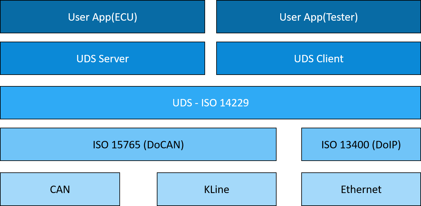 Embien’s UDS stack is implemented on top of the DoCAN/ISO-TP network layer defined as ISO 15765 specification. Apart of this, it can also support over the DoIP transport protocol defined via ISO13400 specification. With these transport layer support, the RAPIDSEA UDS stack can be used over CAN, CAN-FD, Automotive Ethernet, BroadR-Reach directly and LIN and FlexRay with some modifications.